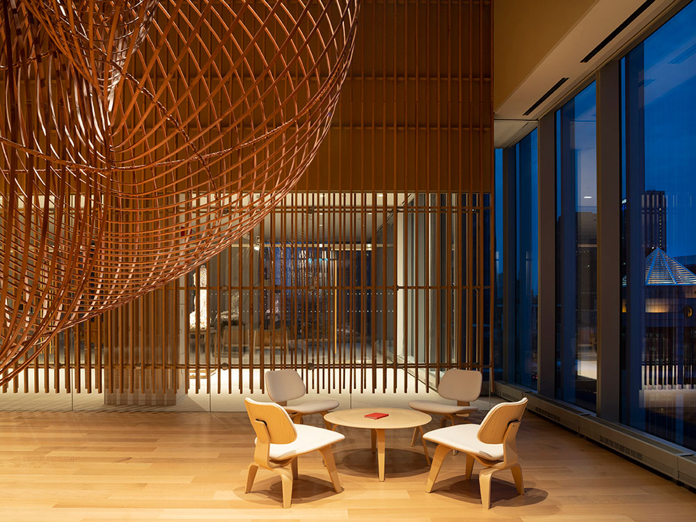 Al 32° piano di un grattacielo a Chicago lo studio Alvisi Kirimoto firma Private Office, 2600 mq di nuovi uffici direzionali sospesi tra le nuvole ma ben radicati nel contesto dell’ex quartiere industriale di West Loop.