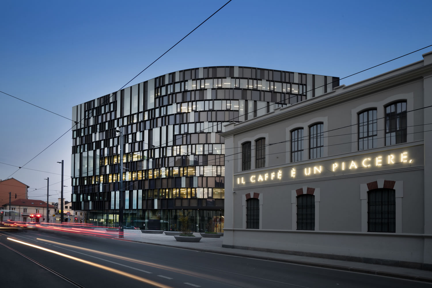 Headquarters Lavazza di Cino Zucchi a Torino - 1 Esterno del Museo Lavazza, sullo sfondo l’Headquarter foto © Andrea Martiradonna pubblicato in data: 13/04/2018