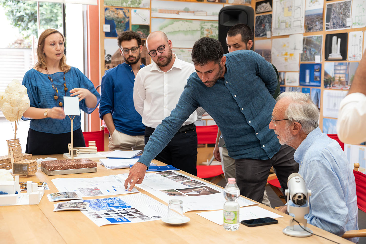 I borsisti raccontano a Renzo Piano gli sviluppi e i traguardi raggiunti in circa otto mesi di lavoro.
