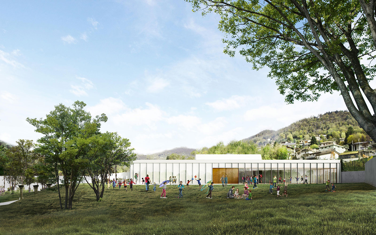 il nuovo centro infanzia progettato da Carlo Cappai e Maria Alessandra Segantini in costruzione nello splendido parco di Villa Paglia.