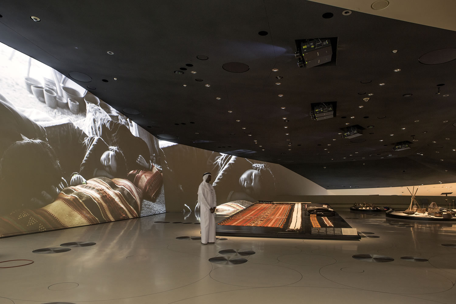 Life in Al Barr (Desert) gallery showing the Bait Al Shar (tent) and Abderrahmane Sissako film in the background.