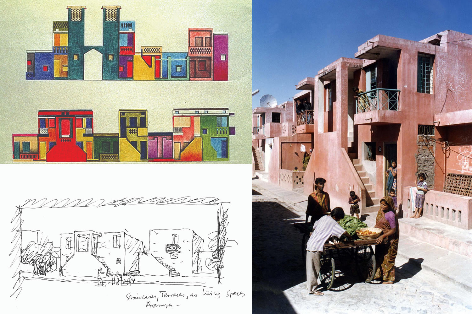 Premio Pritzker 2018 a Balkrishna Doshi - 7 Aranya Low Cost Housing drawing and photo courtesy of VSF pubblicato in data: 07/03/2018