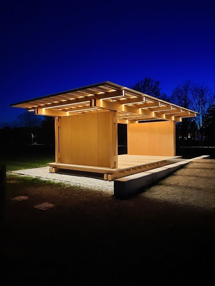 Padova | Padiglione di notte: intervento di riforestazione e realizzazione di un padiglione di legno nel parco dei salici, quartiere Guizza.