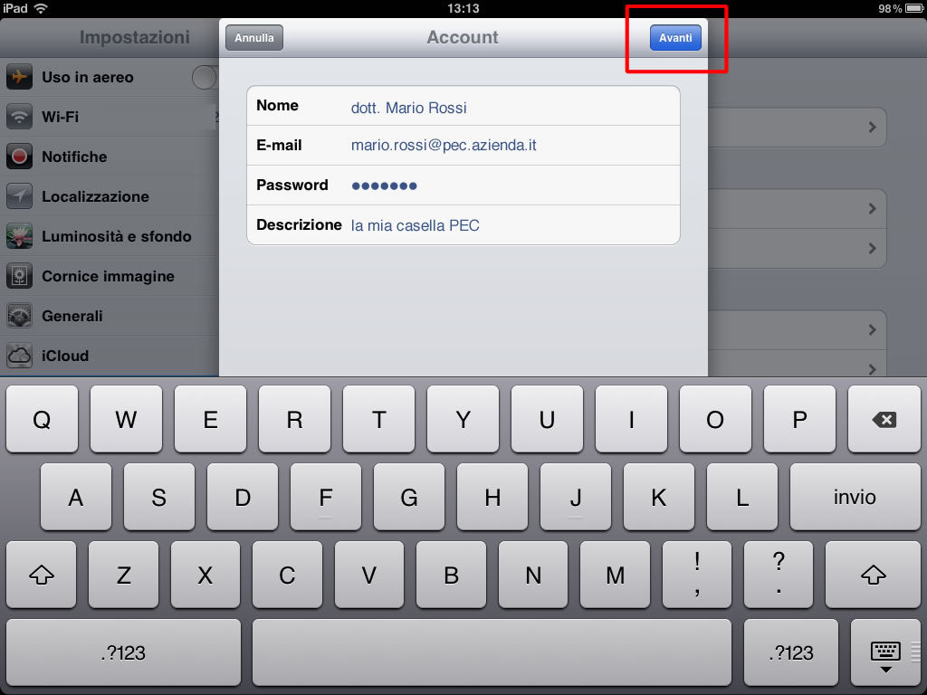 - Nella descrizione potete ripetere l’indirizzo PEC oppure indicare “la mia casella PEC”