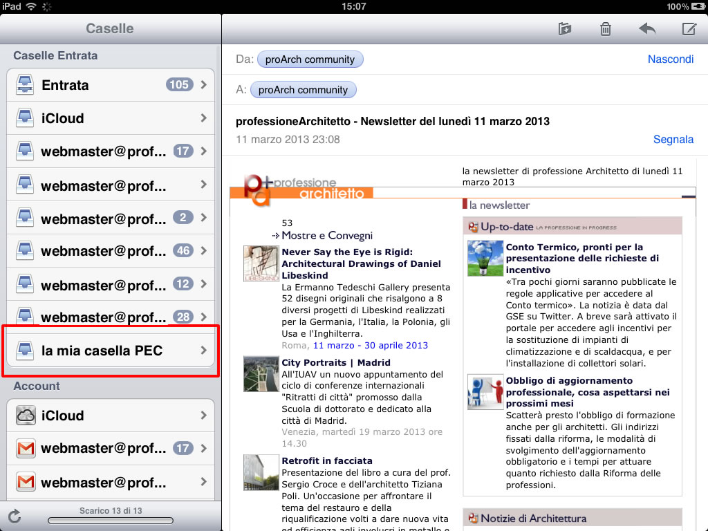 16. … e consultare la nostra casella PEC insieme alle altre che avevamo impostato in precedenza.