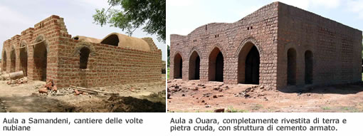 Nei villaggi, tuttavia, i materiali locali rappresentano la povertà, mentre il cemento è visto come simbolo del moderno; così abbiamo cominciato a mischiare le tecnologie, a usare volte di ferro cemento su muri di pietra cruda o volte nubiane su portali di cemento armato. Creando nuove forme per valorizzare i materiali e le produzioni locali.