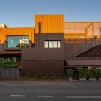 Scaglie romboidali 44x44 Prefa posate senza soluzione di continuità fra fronti e copertura plasmano un edificio monolitico che dialoga con l’intorno cittadin