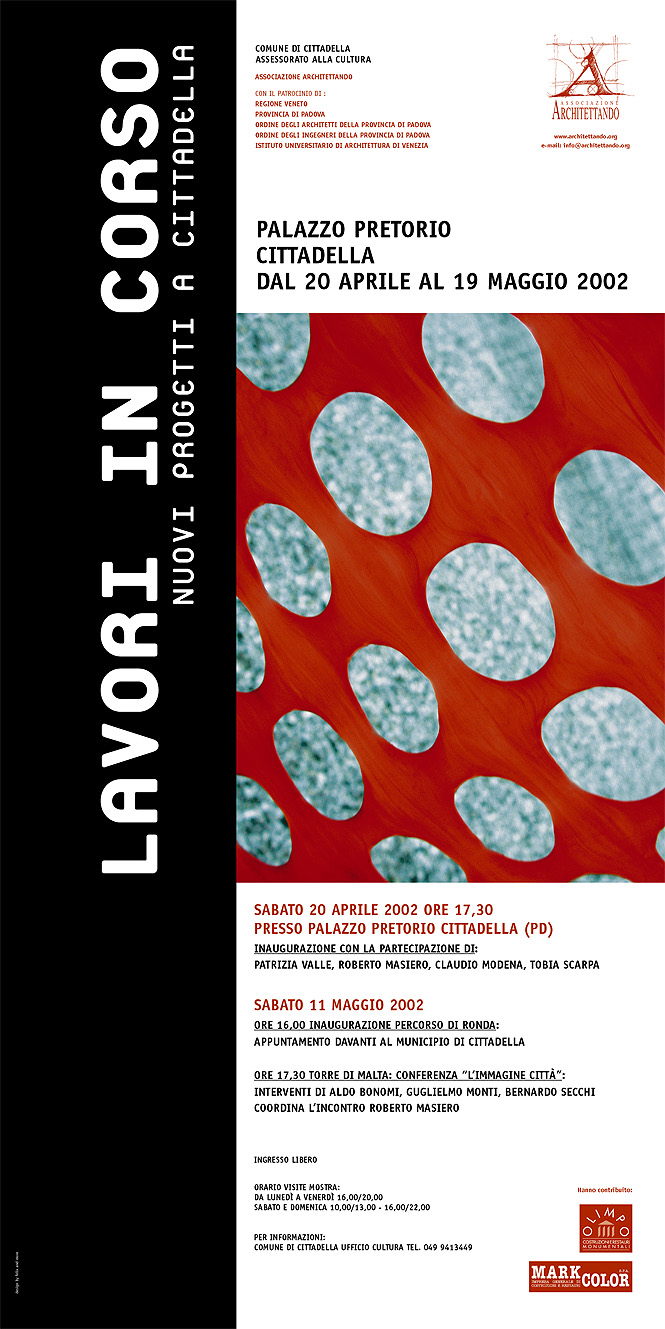 In collaborazione con il Comune di Cittadella Assessorato alla Cultura e con il Patrocinio della Regione Veneto, Provincia di Padova, Istituto Universitario di Architettura di Venezia, Ordine degli Architetti e Ingegneri della Provincia di Padova.