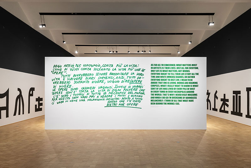 La mostra lascia emergere la molteplicità di forme in cui la parola è presente nell'opera di Ettore Sottsass: elenchi, descrizioni, confessioni, diari, corsivi, racconti, riviste, manifesti, fanzine, articoli, interventi, conferenze e recensioni, tutte tracce utilizzate per accompagnare i momenti e i movimenti delle sue opere.