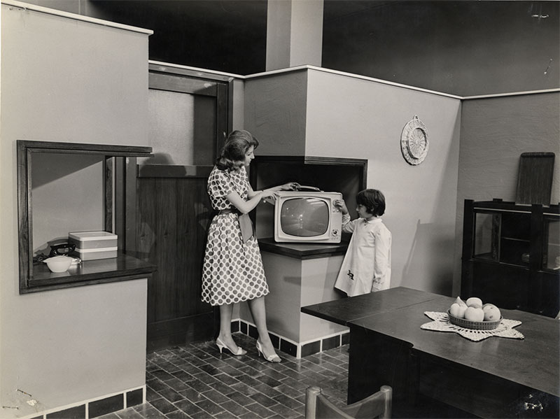 Vittorio Gregotti, Lodovico Meneghetti, Giotto Stoppino, Esempio di soggiorno in alloggio rurale, Sezione La casa e la scuola, Settore rurale, 12a Triennale, 1960. Foto Publifoto. Courtesy Triennale Milano - Archivi