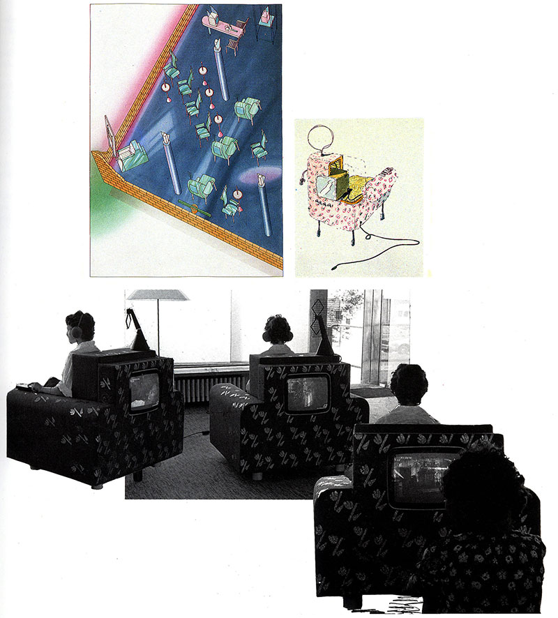 Ugo La Pietra, Poltrone con terminale, mostra "Dal cucchiaio alla città", 1983.Courtesy Archivio Ugo La Pietra