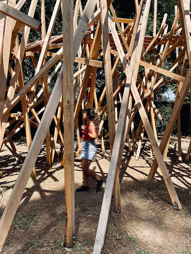 Con questo progetto ArchiSculpteurs ci invita a tornare bambini e immaginare il groviglio di un bosco per osservare cosa accade attorno a noi, e portare il visitatore a far parte del paesaggio, di essere il paesaggio.