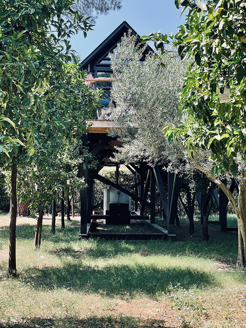 L'ultima installazione è un invito alla sosta e al riposo all'ombra dei grandi pini nel percorso alla scoperta delle altre strutture.