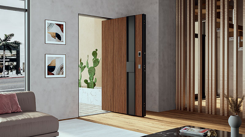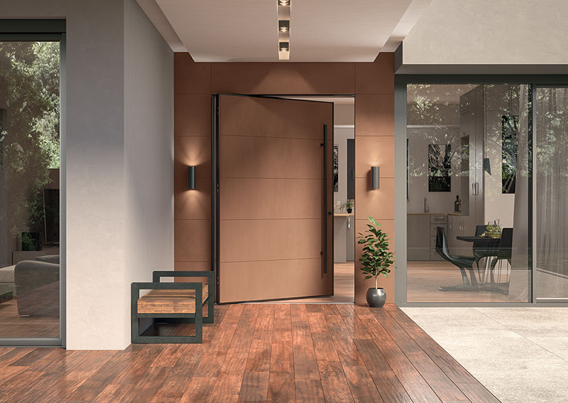 Ne è un esempio DiBig di DiBi Design Group, la porta d'ingresso blindata con apertura a bilico che, con il suo design essenziale e i materiali di altissima qualità, si adatta all'uso sia interno che esterno.
