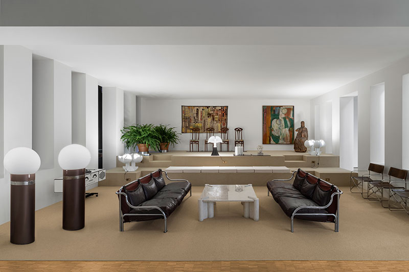 Allestimenti di mostre e di musei, case private, showroom, stazioni di metropolitana, scene di teatro...: la scelta si è concentrata infatti su un campionario di tipologie che, come una sequenza di ambienti, invitano il visitatore all'esplorazione, incastrandosi l'uno nell'altro, proprio come accadde nella sua vita.