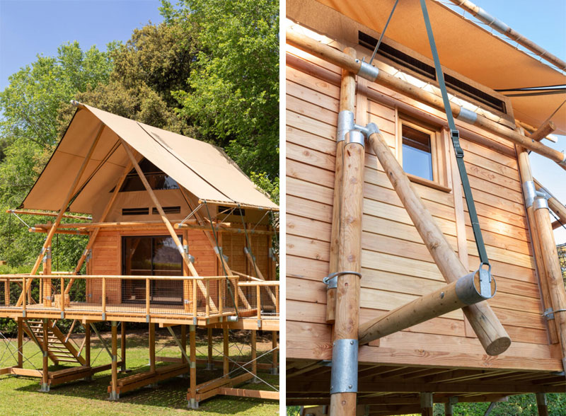 Progettazione: Camille Blanc (de signes associés) e Philippe Bossanne (Huttopia)