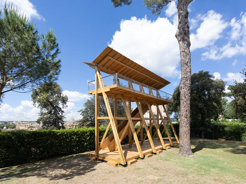 Architettura temporanea per riflettere sul rapporto uomo natura, ma anche per trovare riparo nella rovente Roma estiva, per giocare e per godere di una delle viste più belle sulla città eterna: anche quest'anno Villa Medici arricchisce l'offerta culturale romana, mettendo al centro il costruire in legno.