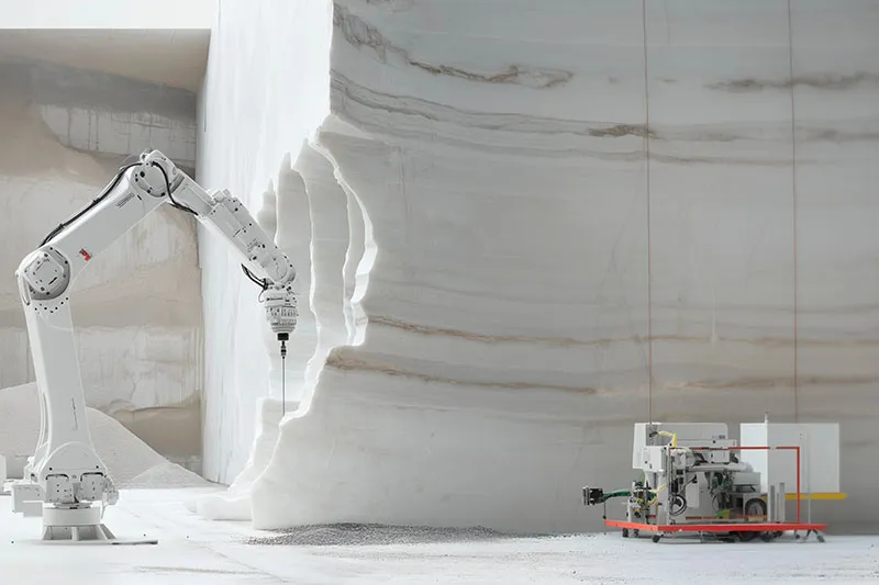 Accolto in uno spazio che ricorda una cava, il visitatore è invitato a vedere la bellezza nelle imperfezioni e nella trasformazione: il marmo si contorce non accettando più il proprio destino, scivolando a terra sotto la spinta del proprio peso. Una monumentale lastra di marmo che sfida la sua stessa natura, piegandosi e sgretolandosi in un momento congelato, come se il materiale stesse riscrivendo le leggi della tensione tra solidità e imprevedibilità. Il risultato è uno spazio in cui la distruzione e la trasformazione si fondono, dove ogni segno porta con sé il ricordo della sua genesi.