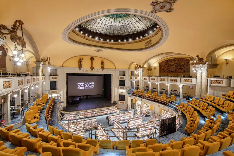 Situato nel cuore di Firenze, in un edificio prospiciente Palazzo Strozzi, il Giunti Odeon - originariamente progettato da Adolfo Coppedè - rappresenta uno dei rari esempi di grande teatro in stile liberty in Italia. Dopo la Prima Guerra Mondiale venne ripreso e completato da Marcello Piacentini con Ghino Venturi, distinguendosi per la sala decorata, la cupola centrale e le facciate in pietra che richiamano il Rinascimento fiorentino.
