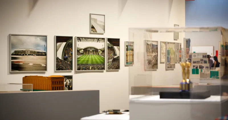 Superata l'opera, si incontra il modello architettonico dell'Allianz Arena di Herzog & de Meuron, affiancato da una tribuna prefabbricata in metallo, trasformata in reading room e spazio per incontri. L'allestimento alterna tavoli con disegni e modelli a pareti-spalti animate da fotografie, poster storici, opere d'arte e documenti iconici.