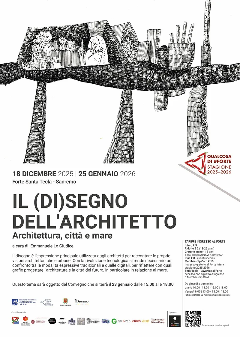Da questi interrogativi nasce la mostra IL (DI)SEGNO DELL'ARCHITETTO- Architettura, città e mare, visitabile dal 18 dicembre 2025 al 25 gennaio 2026 al Forte Santa Tecla di Sanremo, che riunisce disegni e materiali di lavoro di architetti italiani per riflettere sul ruolo, attuale e futuro, del segno nel progetto architettonico.