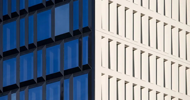Ogni facciata adotta un linguaggio autonomo: ai prospetti opachi, segnati da forti chiaroscuri, si affiancano fronti trasparenti articolati da bovindi. Geometrie e aggetti modulano la luce e la percezione dell'insieme, mentre la corte interna riporta al centro la dimensione di relazione dell'edificio.