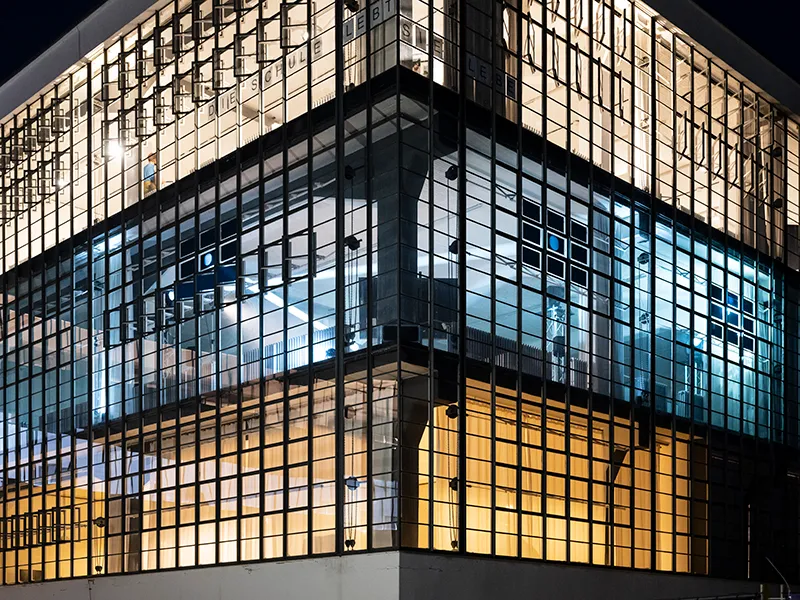 Durante i sette anni a Dessau (1925-1932), inoltre, furono costruiti più edifici Bauhaus che in altre città - compresi l'edificio scolastico, inaugurato il 4 dicembre 1926, le Case dei Maestri e lo storico Ufficio di Impiego. L'integrazione di forma, funzione e materiali come cemento, ferro, acciaio, alluminio, vetro e mattoni, hanno reso questi edifici e i loro arredi non soltanto simbolo di progresso e modernità, ma strumenti per cambiare la nostra percezione, il nostro senso dello spazio e il nostro stile di vita.