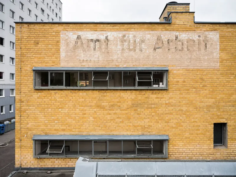 Mattoni | Capannone | Energia. L'architettura del Bauhaus è inconcepibile senza il mattone. E uno degli edifici più importanti con mattoni a vista non intonacati è proprio lo storico Ufficio di collocamento di Dessau, basato su un progetto di Walter Gropius, edificio che è e resterà vuoto fino al 2027: qui il collettivo di artisti danesi Superflex - fondato nel 1993 da Jakob Fenger, Bjørnstjerne Christiansen e Rasmus Rosengren Nielsen - attraverso visite guidate, workshop e interventi site specific è alla ricerca di risposte alle drastiche azioni sugli ecosistemi che l'uomo ha lasciato dietro di sé dopo l'era industriale e le sue infrastrutture, e che continuano a essere prodotti. Come per altri materiali, infatti, anche per il mattone si pone la questione del suo utilizzo futuro. Nella sua forma attuale, è un prodotto di massa dell'era industriale, ad alta intensità energetica e di risorse, con conseguenze durature per l'ambiente.