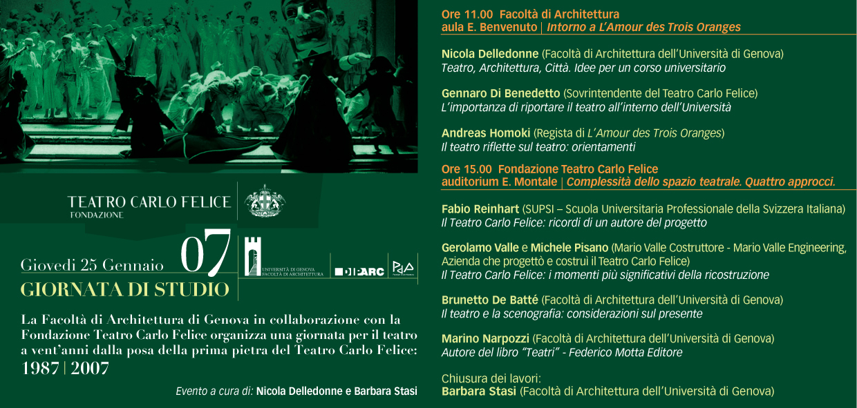 La Facoltà di Architettura, in collaborazione con la Fondazione Teatro Carlo Felice di Genova, organizza una giornata per il teatro a vent'anni dalla posa della prima pietra del Teatro Carlo Felice.