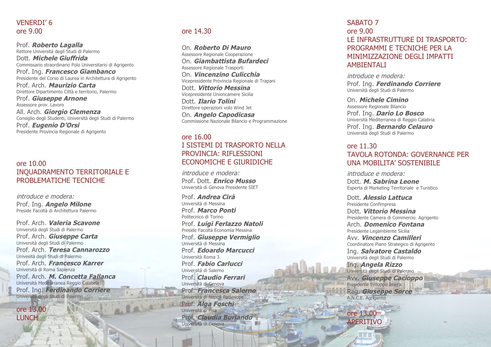 Convegno multidisciplinare organizzato dal Corso di Laurea Specialistica in Architettura di Agrigento - Facoltà di Architettura dell'Università di Palermo, dal titolo "Trasporti e territorio nella provincia di Agrigento - Sostenibilità ambientale, porto turistico, aeroporto, rigassificatore".