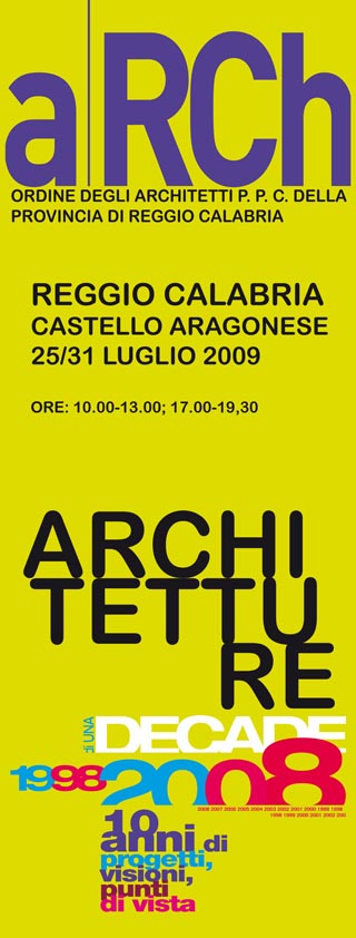Presso le sale espositive del Castello Aragonese a Reggio Calabria verrà inaugurata la mostra dal titolo "Reggio Calabria Architetture di una decade 1998-2008", una raccolta di progetti realizzati in provincia di Reggio Calabria.