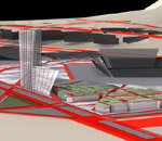 La densità è altresì massimizzata artificialmente concentrandosi nella zona a sud dell'area di progetto. Tutto il lotto è trattato come un unico corpo plastico; una piastra urbana diviene la matrice strutturante di qualsiasi saturazione futura.