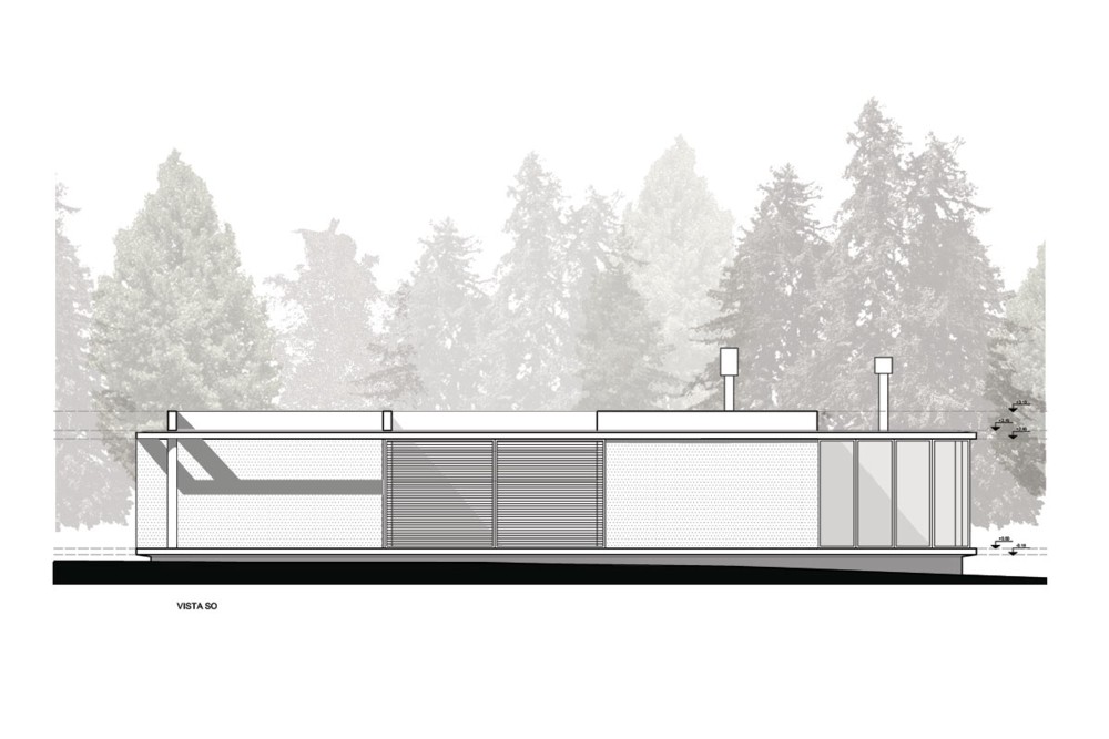 Se concibió la vivienda dentro de un prisma rectangular donde se distribuyo el programa junto con espacios vacios (bosque intervenido).