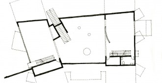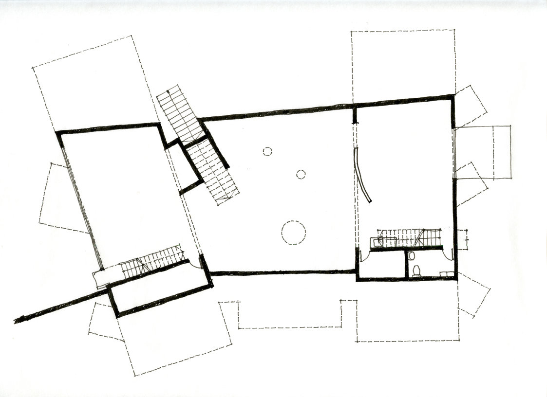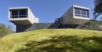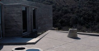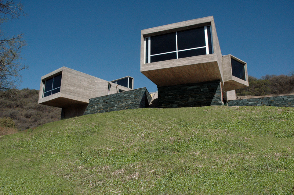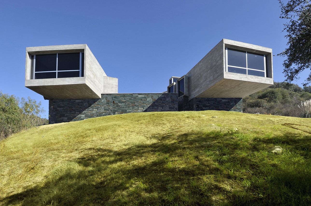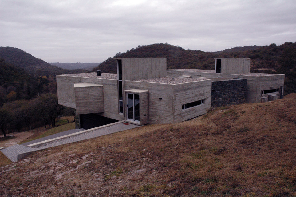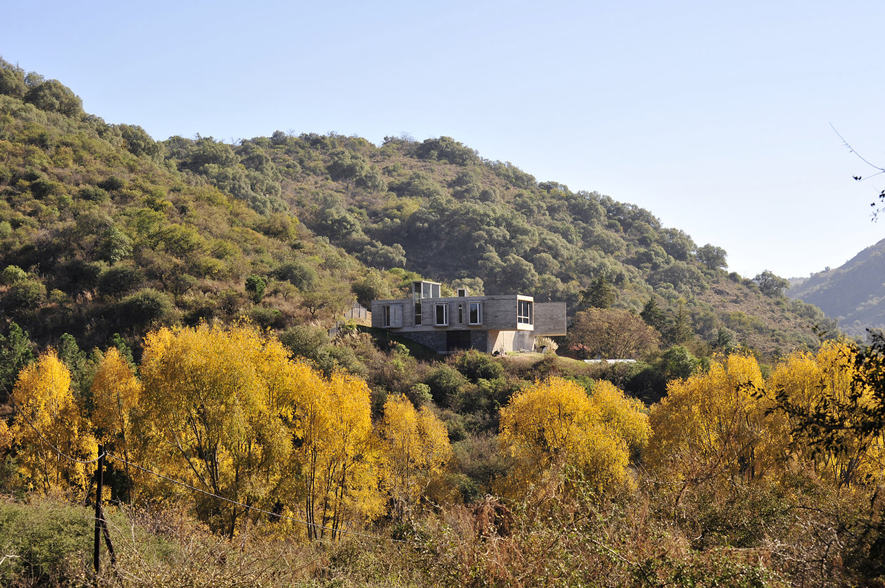 La casa reconoce el sitio de emplazamiento en una reserva natural y trata de erigirse en mirador, espectador, anclado en el escarpado, montaña con visuales a las serranías cubiertas de molles que encierran un pequeño valle abajo y una apertura lejana al lago de Río Ceballos (Córdoba, Argentina) y la planicie del aeropuerto de Pajas Blancas en el remoto confín visual.