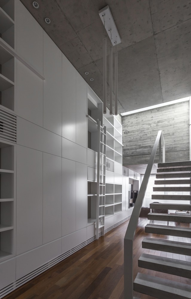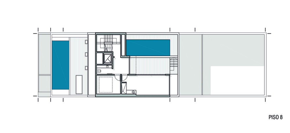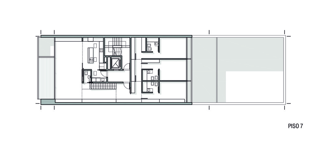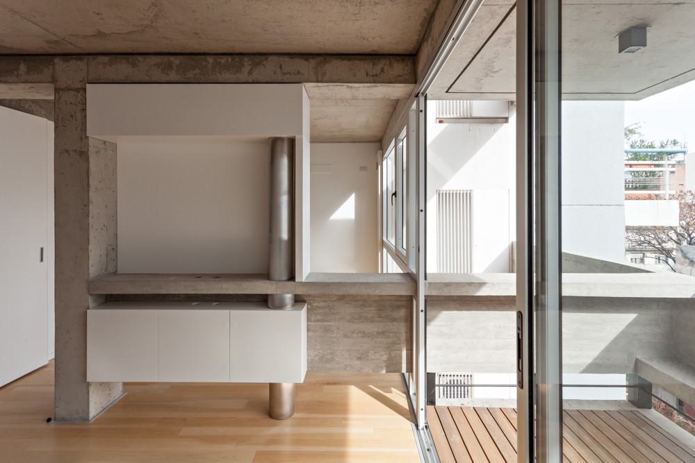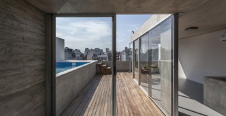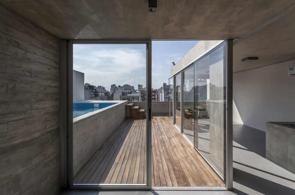 Como remate, el proyecto posee una unidad de cuatro ambientes con piscina propia en un piso superior, relacionando los diferentes niveles por vacíos y entradas de luz que generan una atmósfera propia.