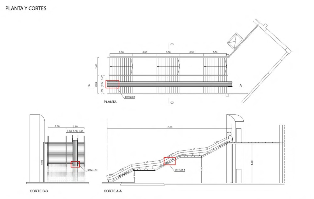 Conjuntamente trabajan como una estructura monolítica y autoportante que permite instalar la obra sin alterar o dañar la escalera de Clorindo.