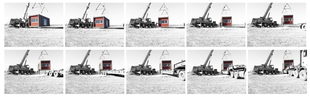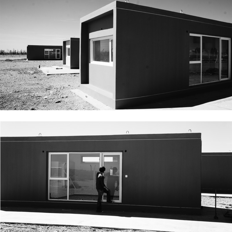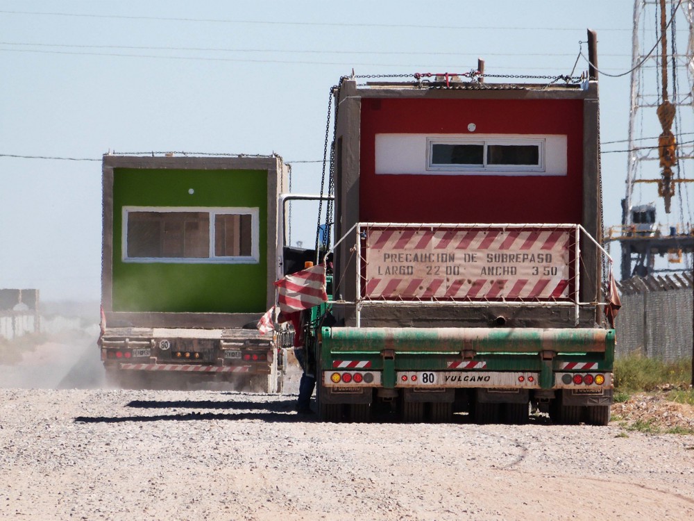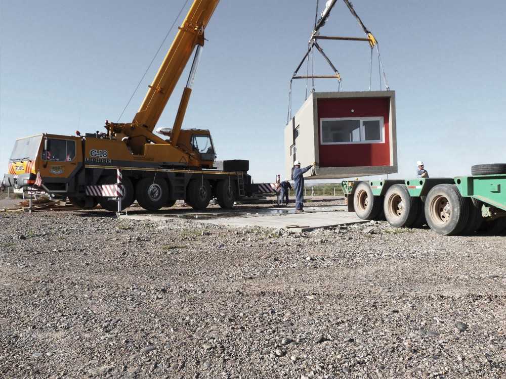 Los módulos fueron construidos en fabrica y luego transportados 100km a los terrenos asignados por el comitente en la ciudad de Cutral Có. Al dia siguiente, una vez realizadas las conexiones sanitarias, los usuarios pudieron habitar sus viviendas.