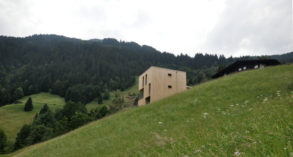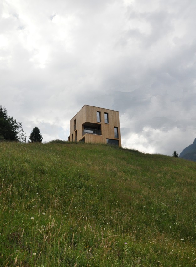 Se trata de una casa de vacaciones situada en Montafon, el valle más meridional de la región austríaca de Vorarlberg. El solar se encuentra elevado en una ladera orientada a sur, con unas vistas espectaculares. La casa se abre, por tanto, fundamentalmente hacia el sur, buscando el sol y las vistas, y se cierra casi completamente en las dos fachadas orientadas a norte.