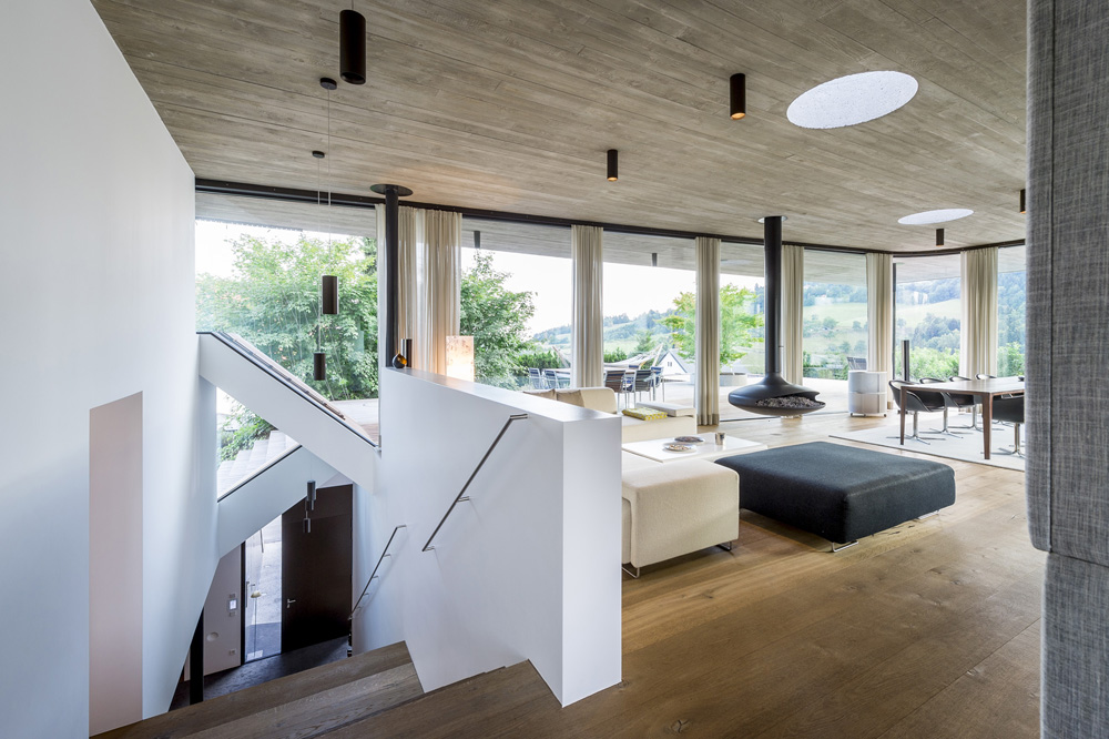 Since regulations only permitted constructionup to a maximum of 200m²per storey, it was not so easy to accommodate a spatial plan for a five-person family , especially since all the primary functions were to be arranged in the living area; an upper storey was not desired.