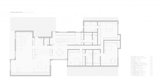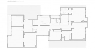 La vivienda se encuentra situada en un edificio característico de la zona del ensanche de Valencia. Una tipología de manzanas cuadradas, achaflanadas en sus vértices que genera bloques de viviendas estrechas y alargadas con patios interiores para iluminación. La zona de día se abre hacia la fachada principal del edificio, generando un espacio continuo y acotado por los elementos de mobiliario que recogen los elementos estructurales. La zona de noche se abre hacia el patio interior de manzana. Entre ambos, se incluyen los núcleos húmedos iluminados por los patios interiores. El proyecto dibuja una distribución permeable, generando una serie de espacios continuos que permiten delimitarse mediante muebles divisorios o amplias puertas correderas. El tono cálido del pavimento junto con la temperatura de la iluminación artificial caracterizan el espacio. Se busca responder al programa con la mínima compartimentación posible para acentuar la sensación de amplitud.