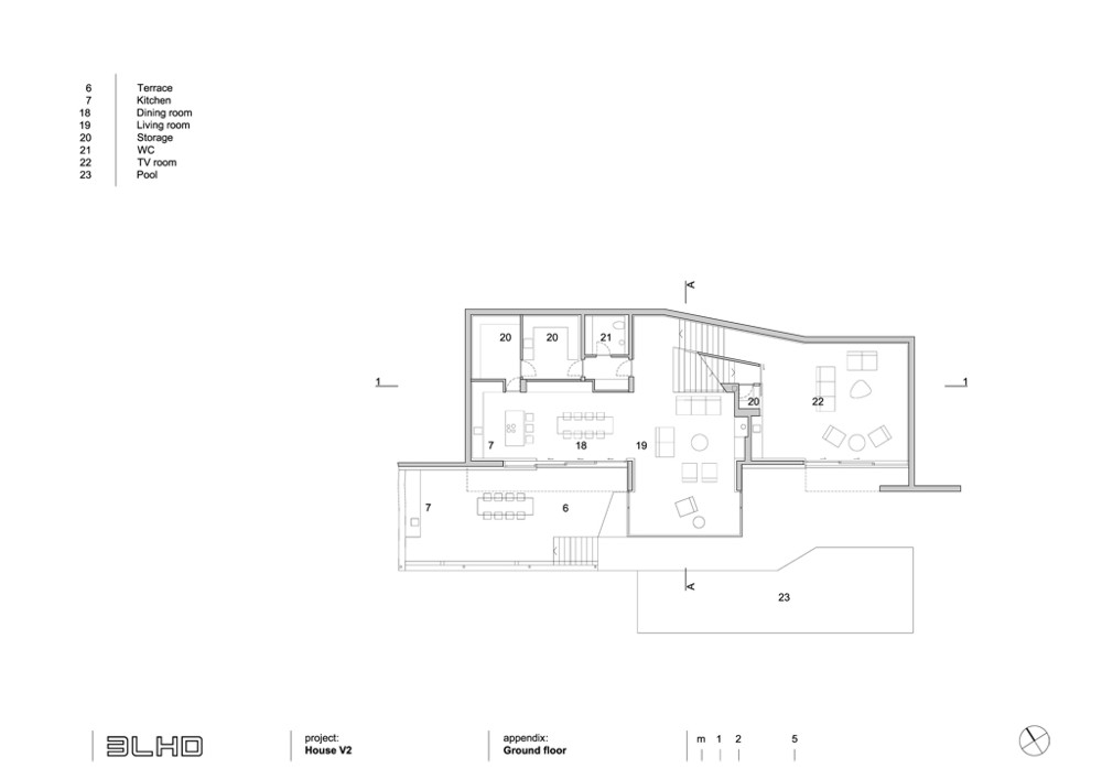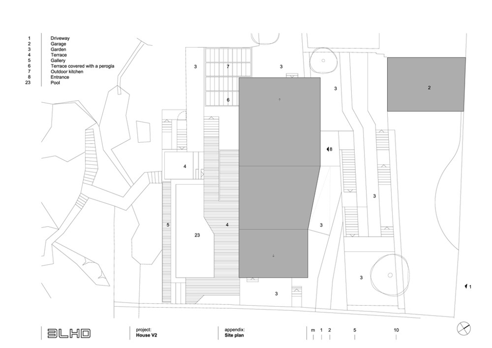 Casa V2 se encuentra en Dubrovnik , en la zona urbanizada de Lozice . En un lugar atractivo cerca del mar, que está determinada por la topografía escarpada El concepto básico del diseño fue el de crear una casa que está abierta a la naturaleza, y al mismo tiempo protegida contra el clima. Las maravillosas vistas que se ven desde la parcela se utilizan al máximo con grandes ventanales en las fachadas.