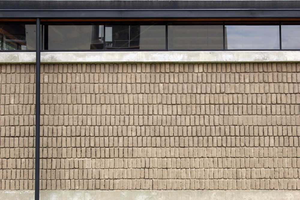 Cuentan los hacedores del oficio: Trabajo en tierra, buenas botas y buen sombrero. Así pues, había que solucionar el muro desde la cimentación hasta la cubierta. Sobre un zócalo de hormigón armado se aísla el adobe del suelo. Este elemento alberga las instalaciones eléctricas e hidráulicas evitando así que pasen por el adobe.