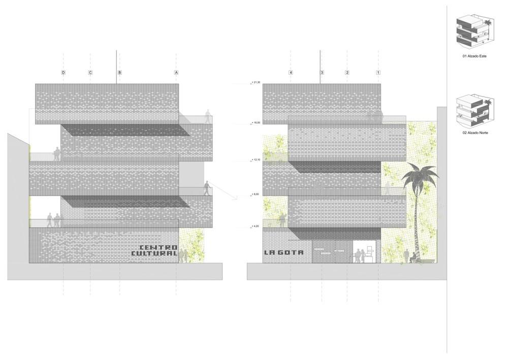 El Centro Cultural La Gota es un edificio híbrido para espacios expositivos que pretende crear un nuevo foco de centralidad urbana, proyectando identidad en la localidad de Navalmoral (Cáceres). Su etimología tiene origen en un antiguo edificio situado en el mismo solar, en los años treinta, creado para remediar los problemas de desnutrición infantil a través de “la Gota de Leche”.