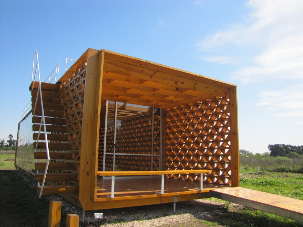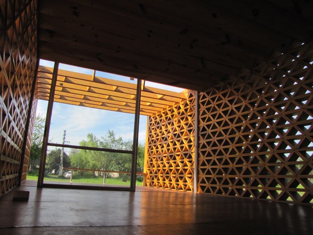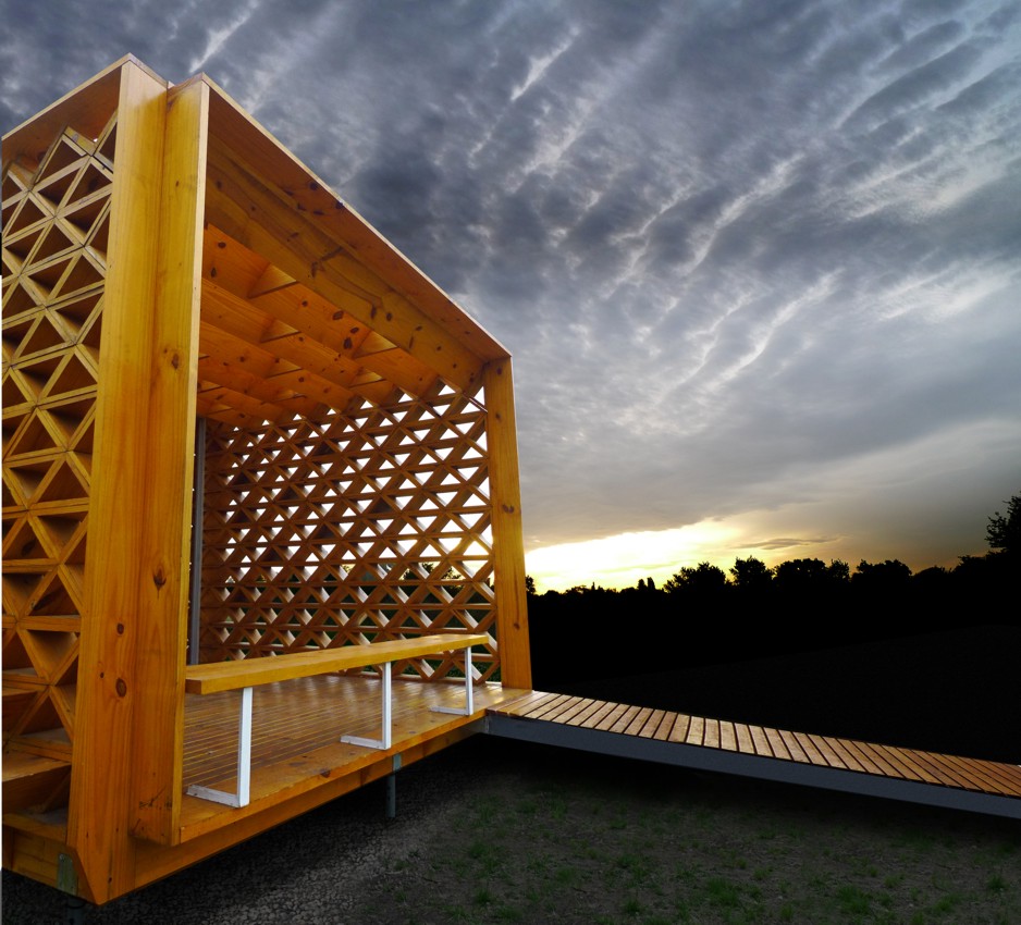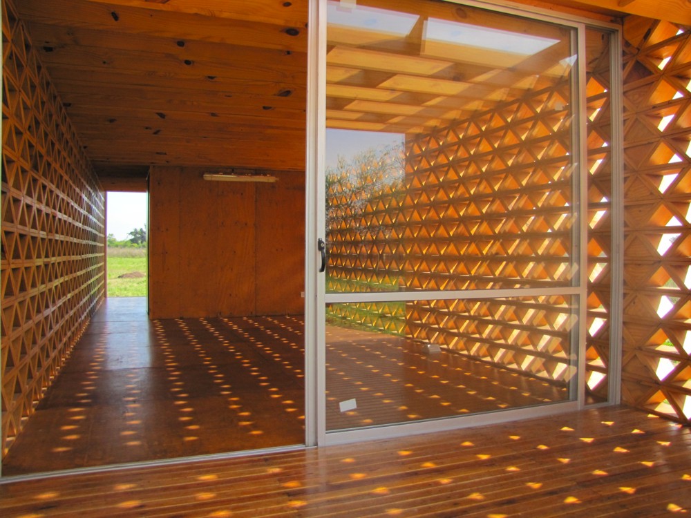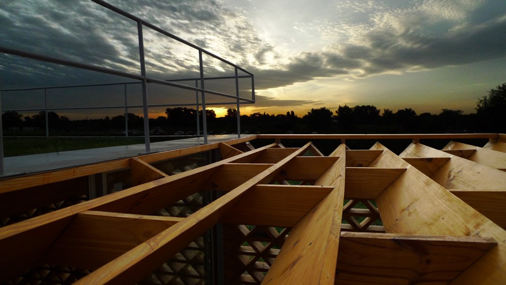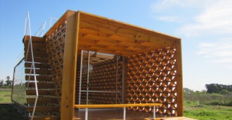 Este módulo construido por su impronta como hecho definitivo en una situación de paisaje concreto, se transforma en el resultado o la verificación de una investigación que ya lleva 3 años de desarrollo dentro del instituto acerca de un sistema constructivo propio llamado SISTEMA MODULAR DE CONSTRUCCIÓN EN MADERA.