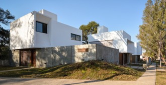Argentina > Como un juego de encastres, tres bloques de viviendas independientes generan un lenguaje similar en el barrio residencial San Alfonso, en Villa Allende, Córdoba. El arquitecto Andrés Alonso asumió el desafío de plantear las casas en un lote complicado, en esquina y con dimensiones reducidas: 600 m2. [ARQ-Clarín.com / designboom]...
