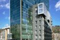 Imágenes del Isozaki Atea (Puerta Isozaki), complejo de siete edificios diseñado por el arquitecto japonés Arata Isozaki en el distrito de Abando, en Bilbao, España [arqa.com]...