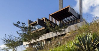 Ecuador > Sobre la ladera de un valle con vistas a las montañas de Puembo en las afueras de Quito, los arquitectos José María Sáez y Daniel Moreno Flores diseñaron una vivienda cuya audaz estructura define el carácter del proyecto y le permite establecer un vínculo respetuoso con el imponente entorno natural. [ARQ-Clarín.com]...
