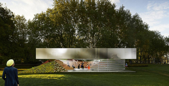 Australia > Un techo en el paisaje. Una cubierta flotante. Un prisma de dos metros de altura que parece flotar sobre la vegetación. Un volumen panelado en aluminio diseñado para ser devorado por el entorno de los jardines Queen Victoria de Melbourne. También para reflejar los rascacielos de la ciudad. Una arquitectura intrigante y sin […]...