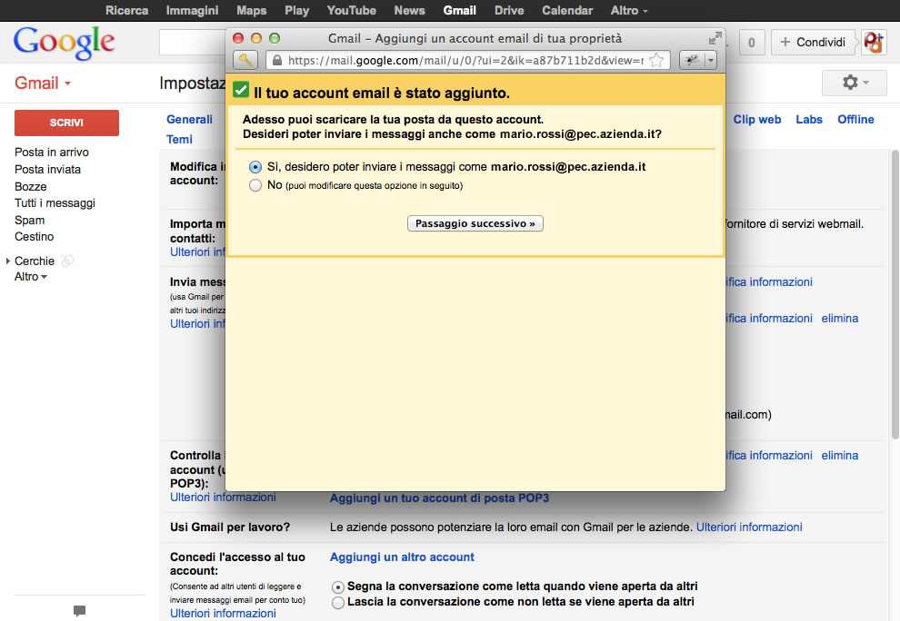 Oltre a ricevere posta, vogliamo anche poter spedire direttamente con la nostra Gmail un messaggio di posta certificata.