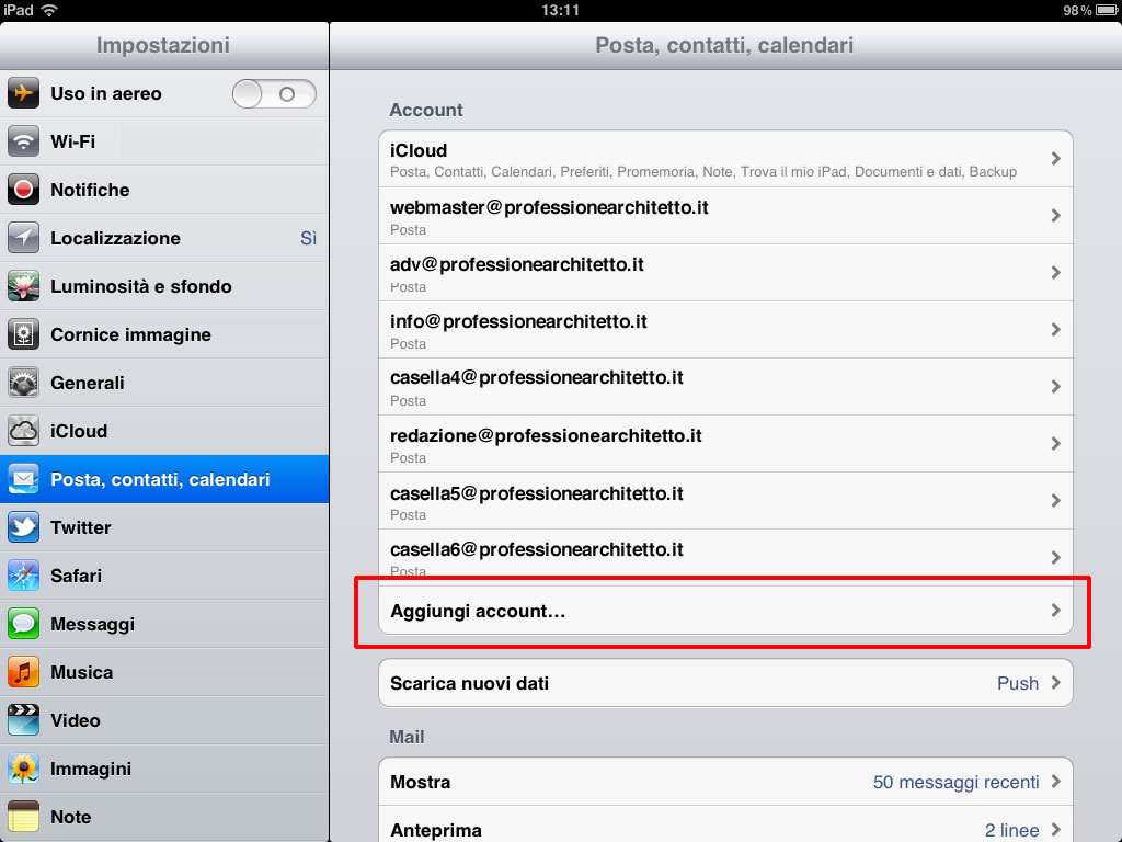 In coda all'elenco delle caselle già presenti selezioniamo la voce "Aggiungi account..."